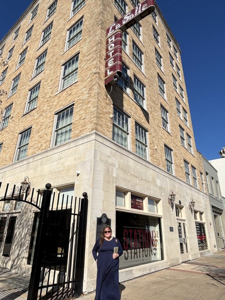 The directory includes historic hotels across the country, but I was hoping to stay a bit close to home after a busy holiday season. When I saw La Salle Hotel in Bryan, Texas allowed dogs to stay, I knew instantly I wanted to share this bucket list challenge with Ellie! As her birthday was coming up, I thought it was the perfect excuse to book a suite for us to stretch out. The timing worked out so well with Bryan’s Friday night community event and I got the chance to explore the city the next day too. The La Salle is rumored to be haunted, but we luckily had a peaceful stay. Though the speakeasy was too busy to visit, I enjoyed celebrating Ellie’s 9th birthday with time together exploring this historic, but updated, hotel with a lovely staff and comfy accommodations.