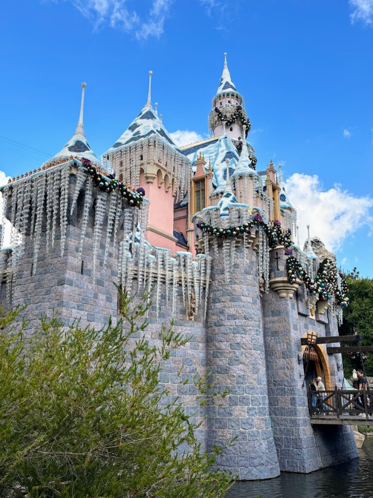 Though not technically a ride, you can walk through Sleeping Beauty’s castle in Disneyland, and it’s worth exploring from every angle, especially during the holiday season. The snow and icicles are a far cry from the weather you’ll most likely be experiencing in sunny Southern California, but it’s no less magical, especially with the holly and ornamentation. But you simply CANNOT miss it lit up at night. It’s perfect!