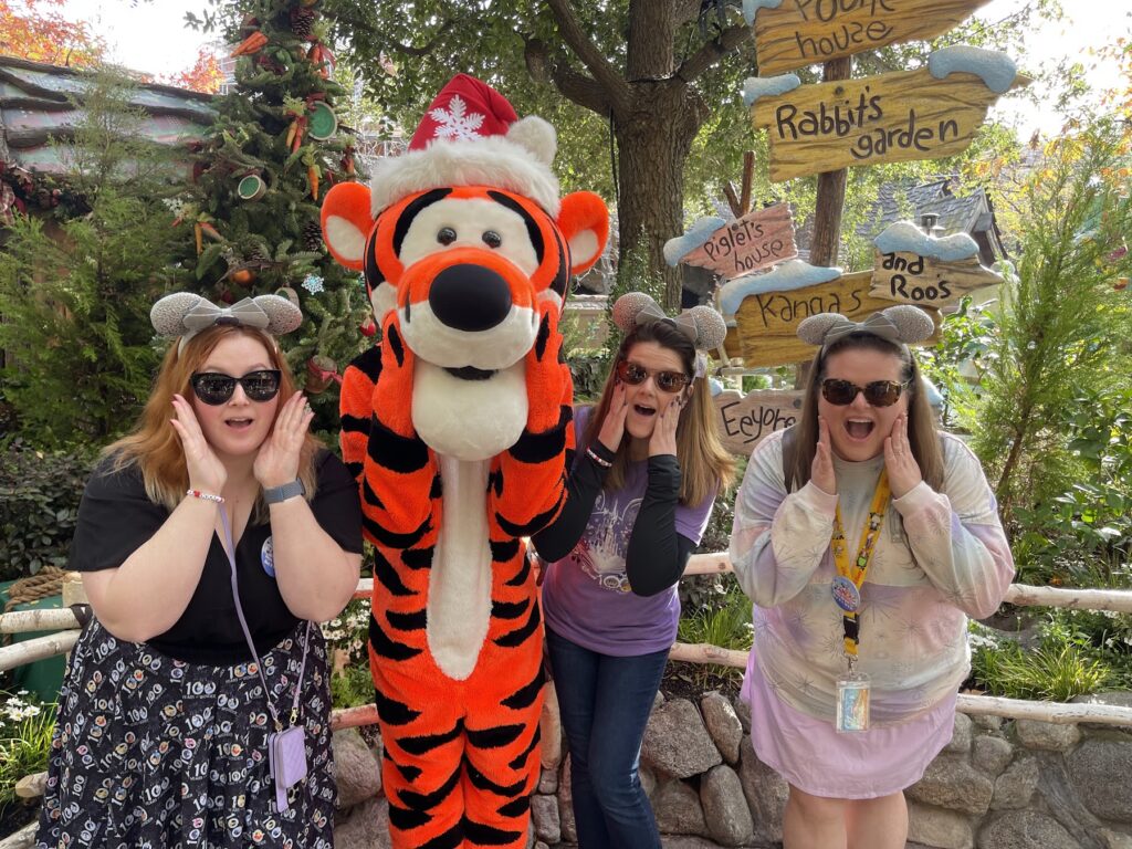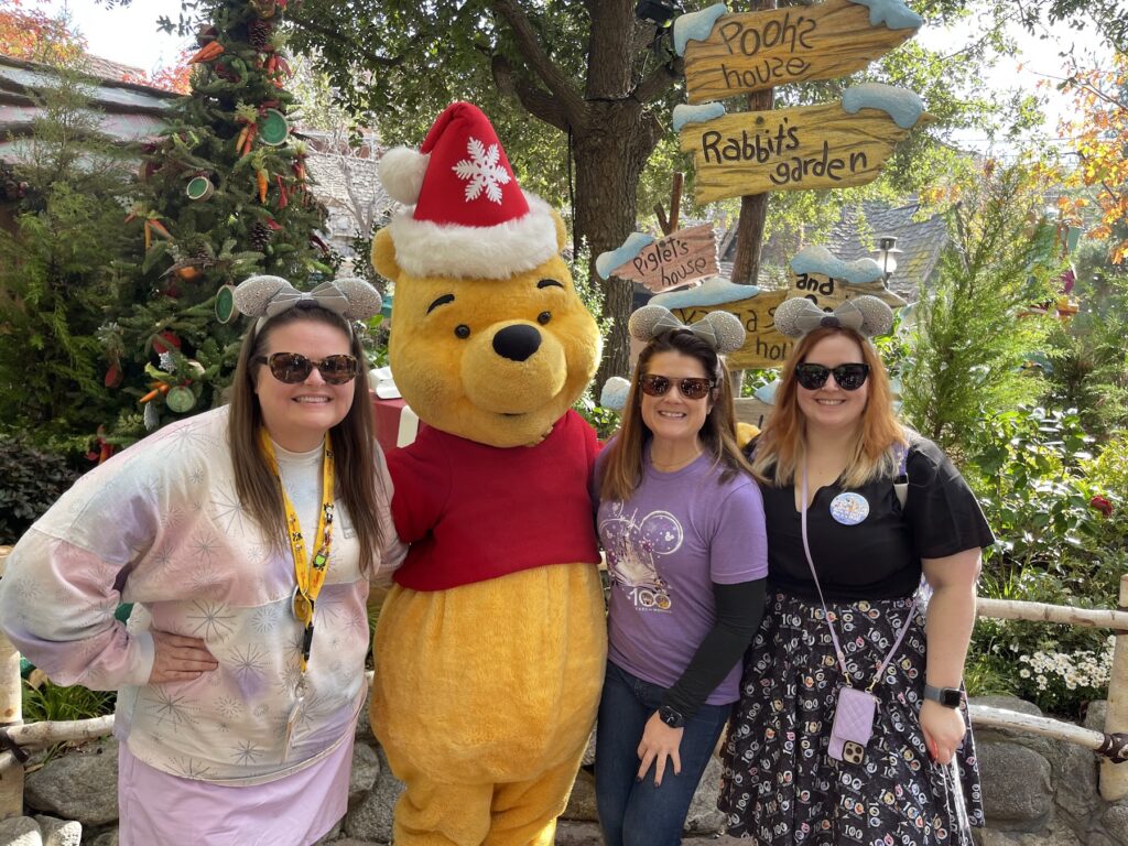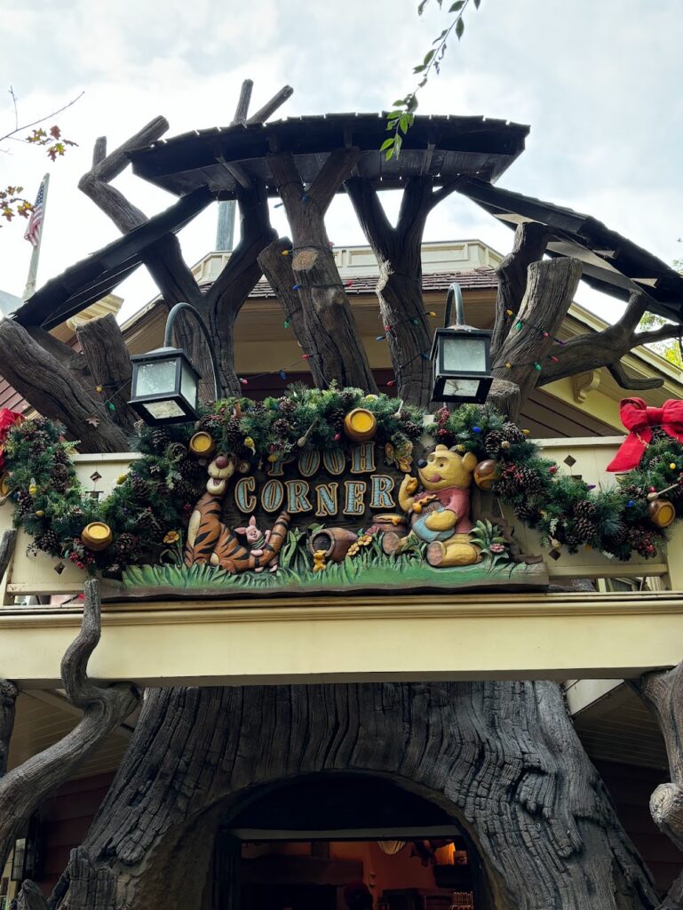 Outside the Pooh Corner store there is a short queue to meet your favorite Pooh friends, who come in a randomly rotating order. We first saw Tigger, then Pooh came out next, and we reentered the line. Eeyore and Piglet are sure to make appearances too if you’re willing to wait. I can’t wait to bring my Santa hat next year!